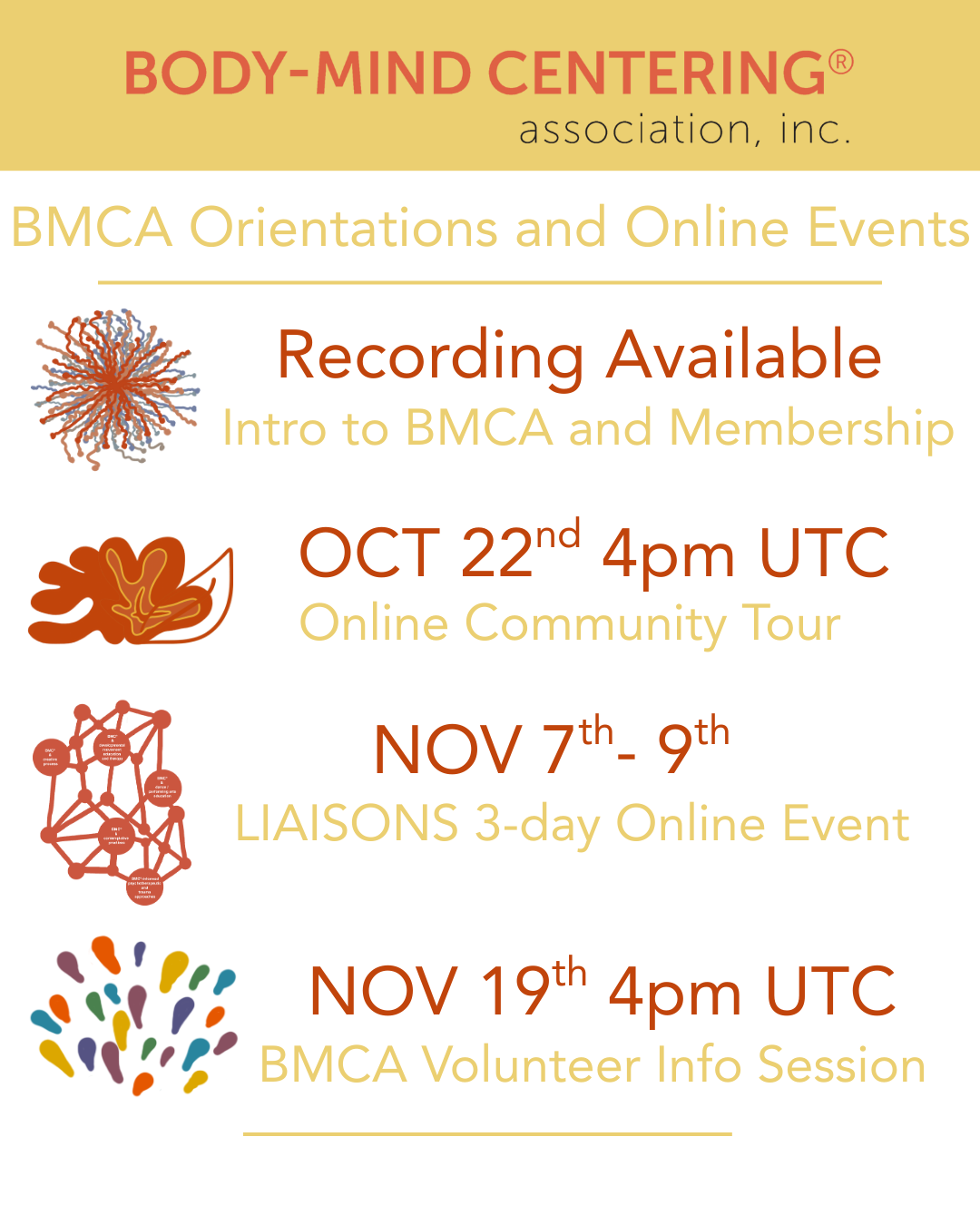 Wednesday, November 19th at 4pm UTC: BMCA Volunteer Info Session A free session available to all current members to learn how to get involved and get your questions answered. Registration coming soon.